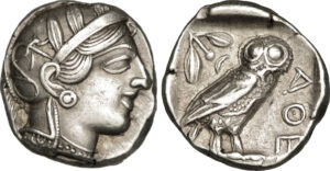 La Grèce antique adopta rapidement l’idée de la monnaie. Les Grecs commencèrent à frapper leurs propres pièces en argent, chacune portant des symboles et des images de divinités, d’animaux ou de figures emblématiques. Les pièces athéniennes, avec la chouette de la déesse Athéna, devinrent particulièrement célèbres et étaient largement acceptées à travers le monde méditerranéen.