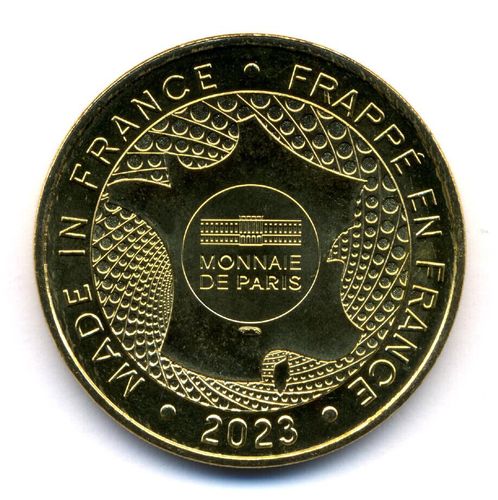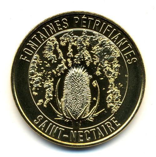 Cette médaille représente la fleur de cardère en train d’être cristallisée sous l’eau des Fontaines Pétrifiantes.