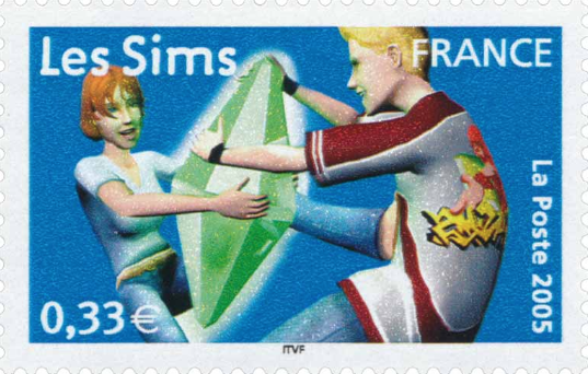 Timbre de 2005 – La Poste, valeur faciale 0,33€. Collection Héros de jeux vidéo. Le timbre représente le deuxième opus de la franchise. Les Sims 2.