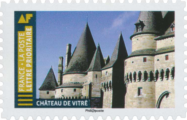 En 2019, La Poste a rendu hommage à ce joyau du patrimoine en émettant un timbre illustré du Château de Vitré. D’une valeur faciale de 0,88 €, il fait partie de la série « Trésors de notre patrimoine ». On y voit le château en majesté, ses tours crénelées se détachant sur un ciel breton clair, avec une représentation fidèle des détails architecturaux.